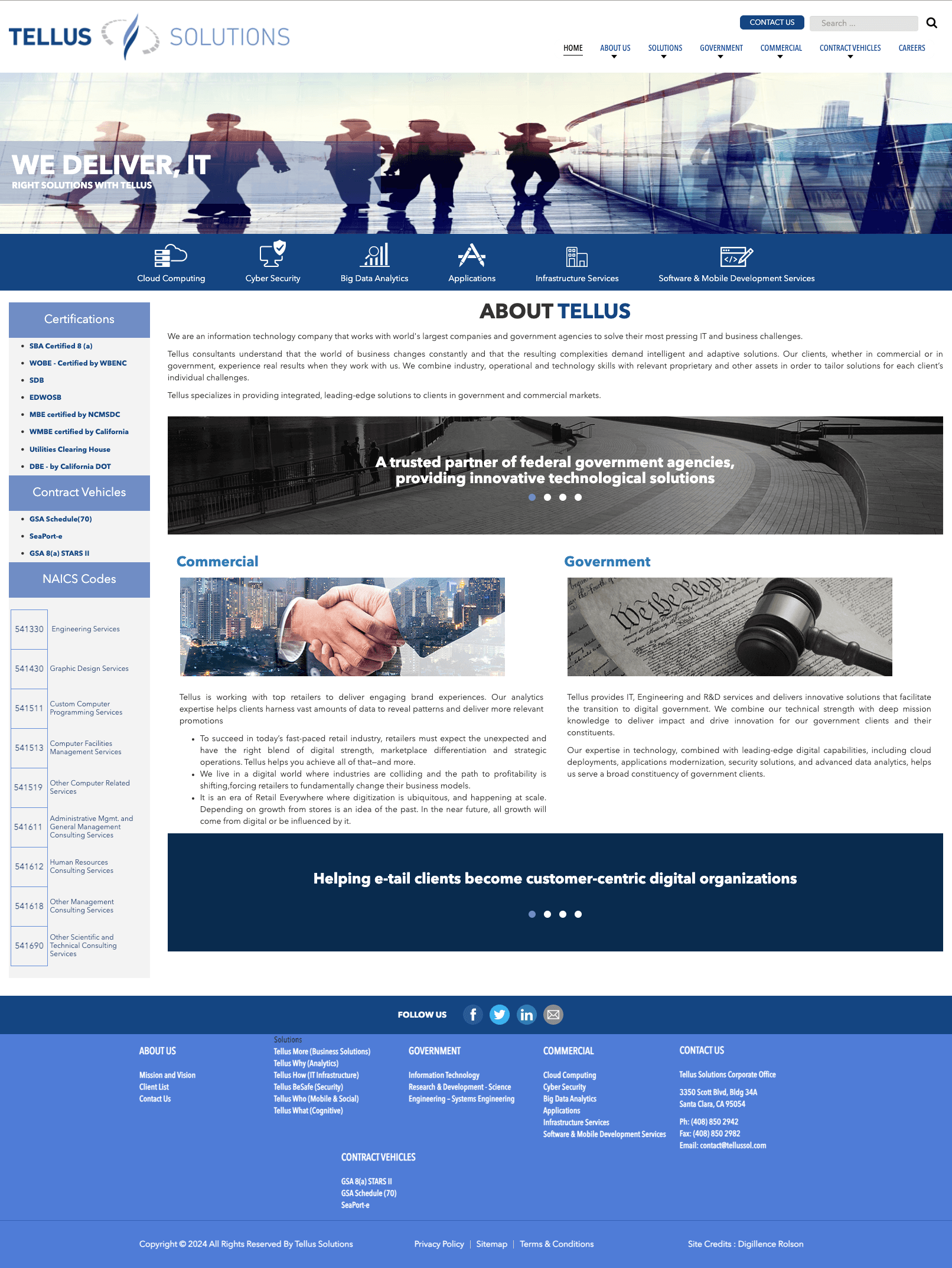Tellussol is an information technology company that works with the world's largest companies and government agencies to solve their IT and business challenges. The website acts as a primary touchpoint for communicating service offerings and driving client engagement.
