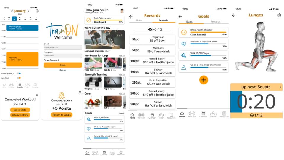 trainON is a fitness application designed to help users build consistent workout habits by combining guided exercise education with motivational tools. Research revealed that many individuals struggle to achieve their fitness goals due to a lack of knowledge around exercise technique, difficulty staying motivated, and challenges maintaining a consistent routine. trainON addresses these barriers by visualizing muscle activation during exercises, rewarding progress through a lightweight motivation system, and enabling users to plan workouts through an integrated calendar. The goal of the product is to make workouts easier to understand, more engaging, and easier to maintain over time.