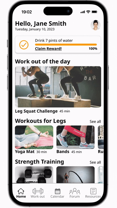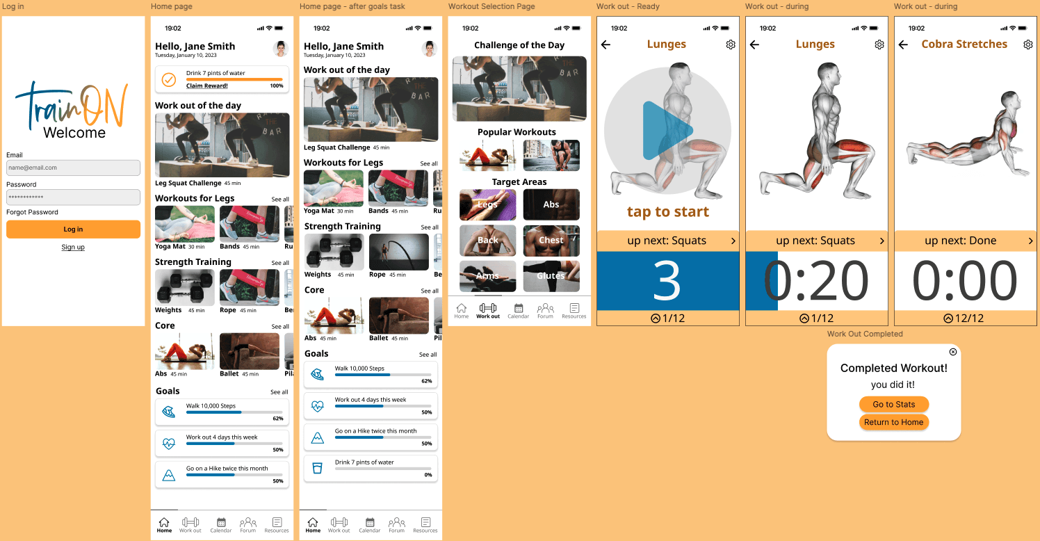 I developed a high-fidelity prototype to bring key features and user flows to life, focusing on workout selection, guided exercise experience, and progress tracking. This allowed for realistic user interactions during testing and helped validate core design decisions.