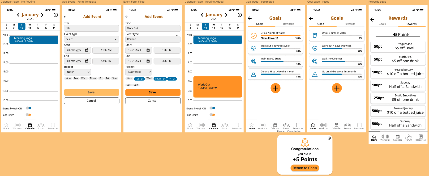 The goal of the app was to create a simple and effective app for users working towards a fitness goal. With multiple iterations, I made sure to reference my mood board and style guide to make sure my design aligned with the brand.